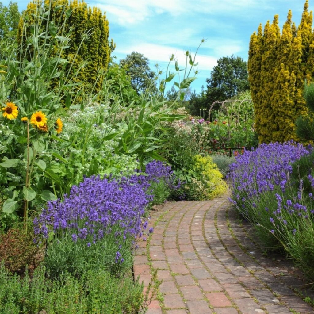 • Lavender’s soft purple flowers contrast beautifully with roses’ vibrant reds, pinks, and whites.