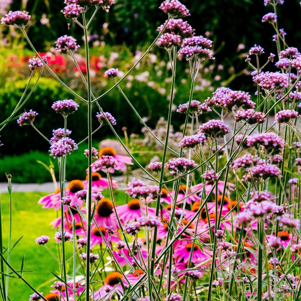 • Late Bloomers: Coneflowers, goldenrod, and asters.